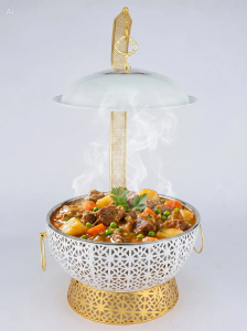 • Cover with Handle – Keeps food warm while showcasing your dishes.